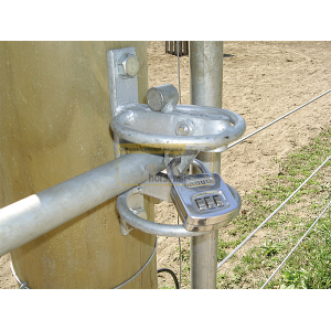 Verrou simple sécurisé adapté aux barrières extensibles et grillagées.