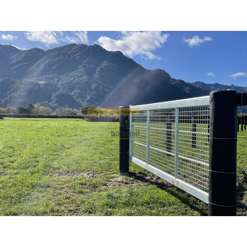 Porte de prairie à largeur variable, construction solide en tube acier avec raccordement par emboitage, diamètre des tubes : 42,4mm/34mm