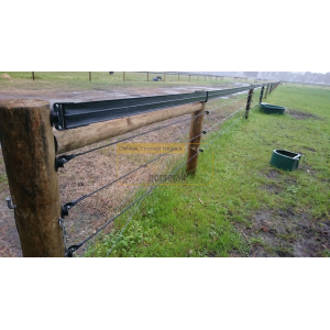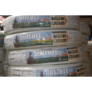Le fil électrique Hotcote se compose d'une âme en fil d'acier de 2.5mm doté d'une protection anticorrosion zinc et aluminium, enveloppé dans une gaine conductrice en copolymère, qui assure une visibilité optimale pour un minimum de risque de blessures et 3 raies conductrices en carbone noir qui assurent un maximum d'impact du courant sur l'animal. Ce fil est très bon conducteur, il sera possible de maintenir une très forte tension sur les clôtures de grands périmètres jusqu'en bout de ligne. La fiabilité de cette clôture est par conséquent excellente.