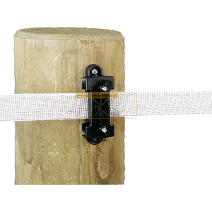 Isolateur massif pour rubans jusqu'à 40 mm; blocage sûr du ruban entre 2 mâchoires; idéal comme isolateur de coin pour rubans de 40 mm